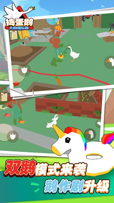捣蛋鹅大鹅模拟器是一款充满趣味和挑战的休闲益智游戏,玩家将扮演一只捣蛋的大鹅,在各种场景中自由探索并制造混乱。玩家需要穿梭于庄园、城镇、房屋以及酒馆等多样化的场景中,控制大鹅进行各种恶作剧,给游戏中的NPC带来麻烦,同时也为玩家带来乐趣。