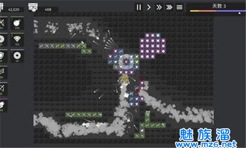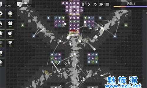 开局直接在中间使劲摆【武装矿井】就行,来的几个菱形完全可以无压力的应对!左边阵地的后三格也可以放武装矿井,然后直接安心发育就行了!升!升塔的钱矿井出!前期直接把【日光塔】和【武装矿井】拉的满级没有压力!如果缺水晶在右边阵地后三格放【能产水晶的那个矿井】。剩下直接在左边放多重和大炮,因为多重的射程近所以放在前面,大炮放在后面,热能塔两边各一个。优先放左边因为可以连带着打下路,然后直接库库升级!多重分支右侧阵地选【广角射击】,左边阵地选【穿透散弹】;大炮选【连续射击】就行;盾不重要!它要真的吵着让你给它升级你就给他升【瞬时防御】!第三天来的刹那把热能塔给我抬到二级!我敢说右边阵地都干不了啥事,因为大炮、多重可以帮助打到下面,而八个武装矿井相当于八个绿箭塔!
