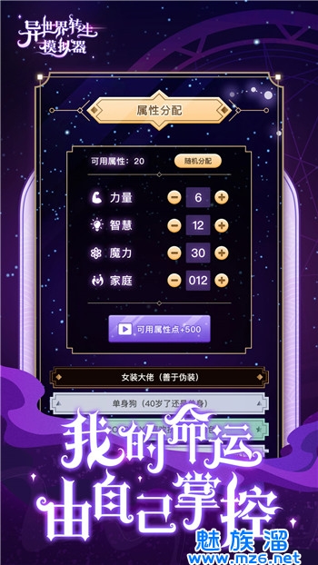 玩法很是自由,这里会随机分配各种不同属性,不同的结局。