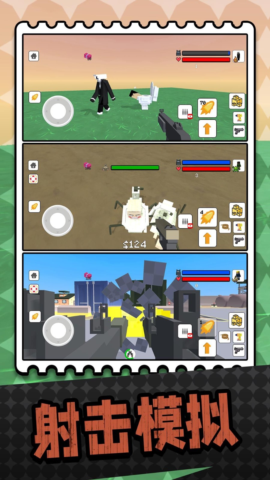 马桶人射击模拟器游戏是款拥有海量地图场景的射击游戏。玩家可以自定义马桶人的形象,在广阔的沙盒世界中展开追逐竞技,体验非常惊险的射击玩法。场景中会有大量的怪物出没,玩家需要组装射击装备,不断地竞技,才可以发挥超强战斗力对抗敌人哦。