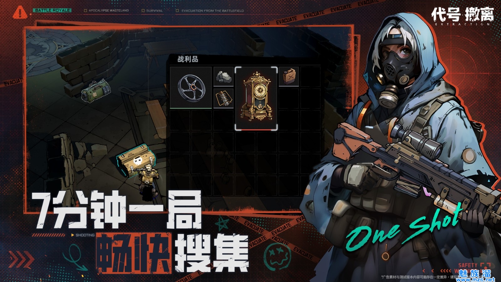 《代号:撤离》是一款融合了生存、射击和合作元素的竞技手游。在这里,你将进入一个充满挑战的废土世界,与队友搜寻宝藏、突出重围!玩家可以自由探索广阔的地图,寻找稀有资源和贵重物品。你将与队友紧密合作,通过巧妙的战术和精准的射击,击败敌人,保护战利品,并成功撤离战场,享受轻松爽快的战斗掠夺体验。