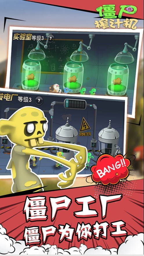 3、主角是鲜榨果汁店老板,将僵尸送入地下工厂榨汁,制作多种风味的果汁出售,赚取金币后可以扩建工厂和升级装备。