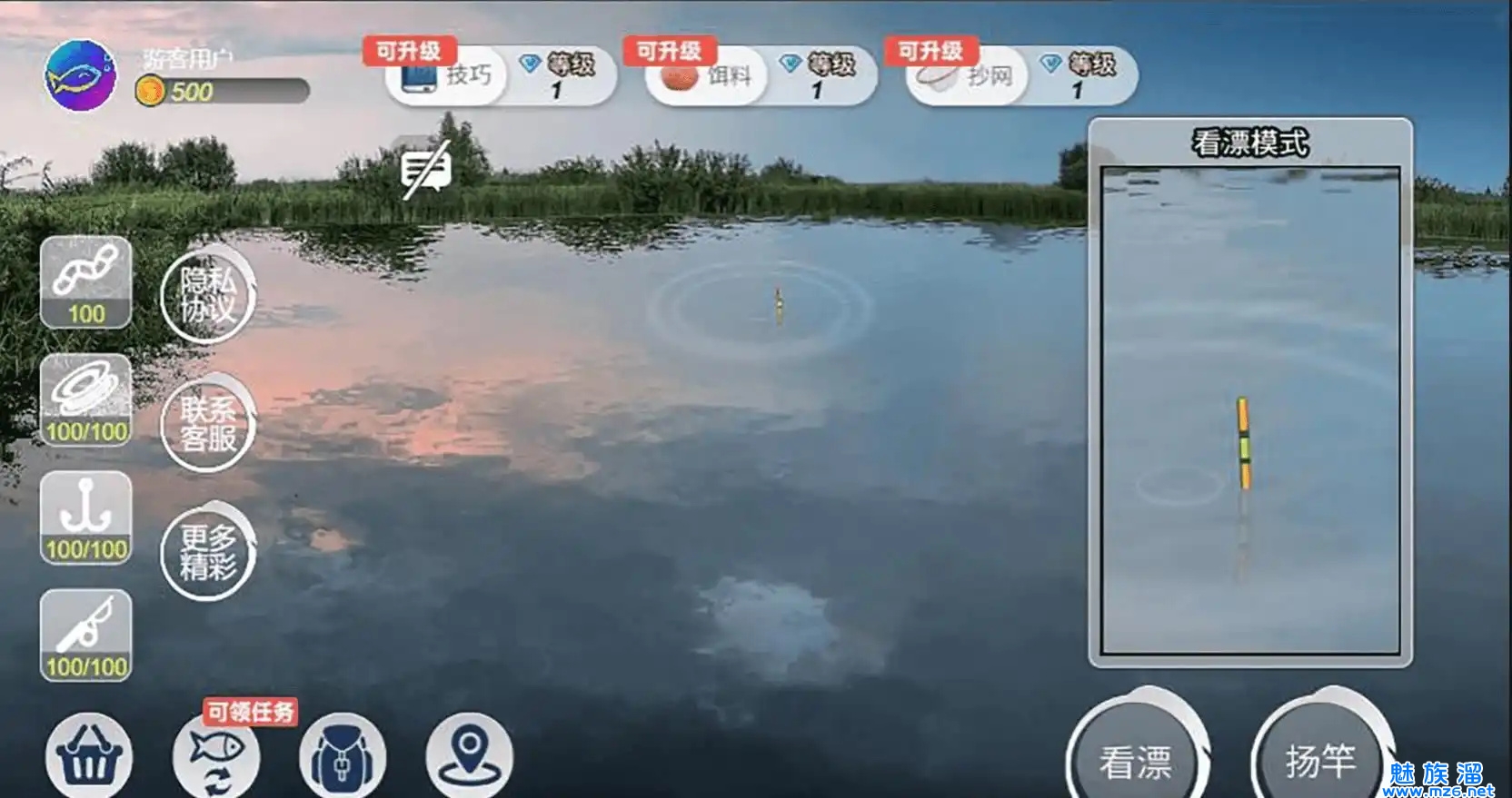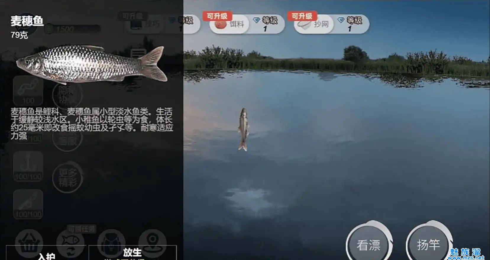 3、游戏的玩法很简单,甩杆钓鱼,也有一些技巧可以让你钓到稀有的鱼王。