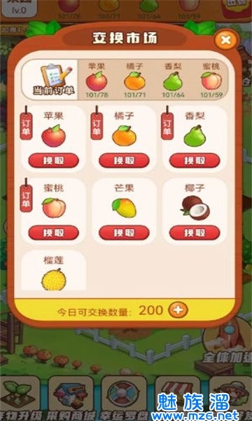 2、解锁不同的道具,来加速果树的成熟,每天都有丰富的收益。