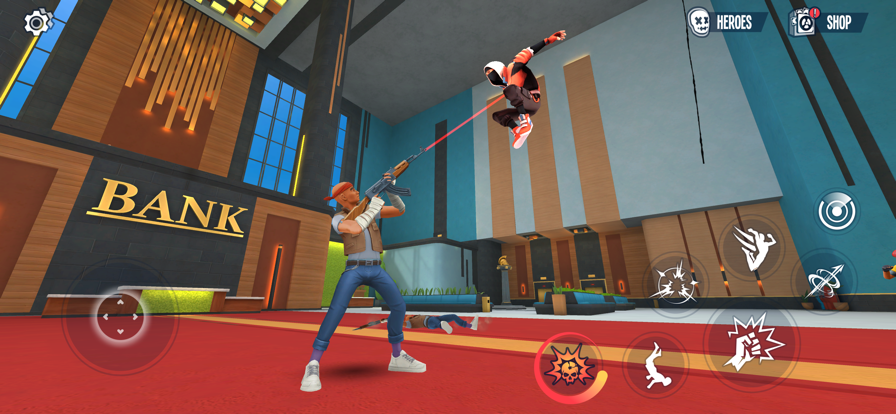 1.屏幕右侧的键位用于执行攻击.发射蜘蛛丝和跳跃等动作,灵活运用这些技能来躲避敌人的攻击并反击。