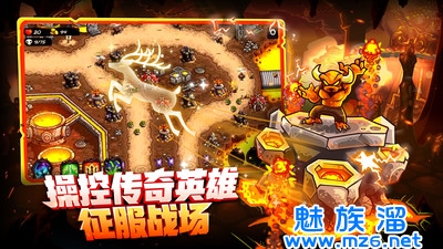 3、不同的英雄都有自己的战斗技能,玩家需要扮演塔防的角色轻松消灭不同的敌人。