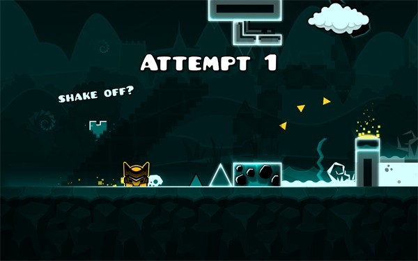 1. 主角方块会自己向着屏幕右边前行,我们要做的就是点击屏幕让它跳跃起来躲避路上的障碍陷阱!