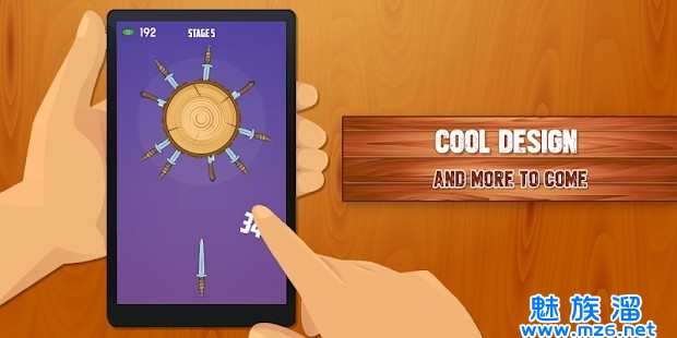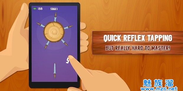 4、只要将所有预备的飞刀投掷到木桩上,就能使其破碎,你也会顺利的过关,解锁下一个级别。