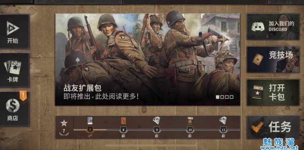 1、你需要从二战中的五个主要阵营中选择一个来打造自己的卡组并与其他玩家进行对抗。每个卡组都可添加一个盟国,你可以从盟国获得支援,进而取得战略上的优势。