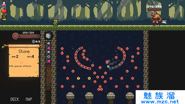 起初玩家只会有石头和匕首弹珠,到后面可以收集其他弹珠,中途也可以强化和删除弹珠。