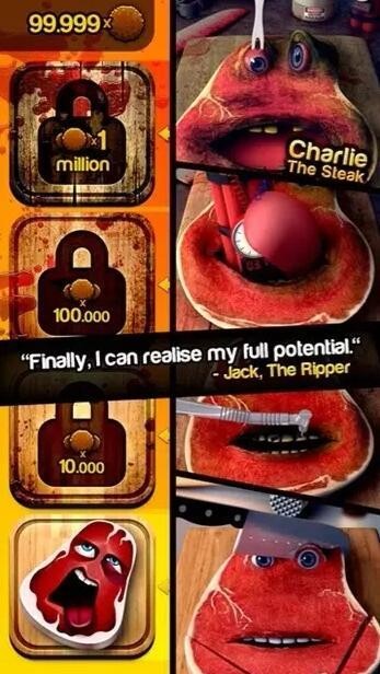 3、在游戏里,玩家可以使用锤子、刀子、酱汁等攻击牛排。4、需要在攻击牛排的基础上完成各种任务以获得肉丸。