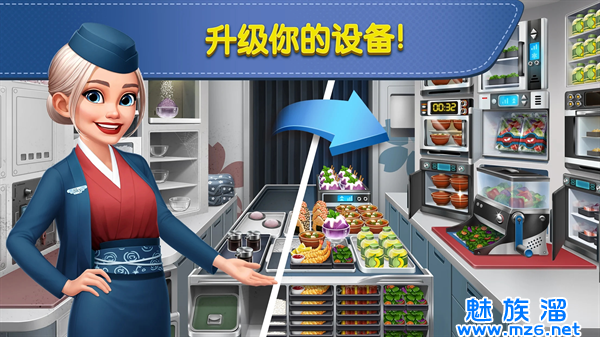 2、烹饪美味的餐点和甜点,并在这个免费的高度上瘾的时间管理烹饪游戏中将其用于商业航班;