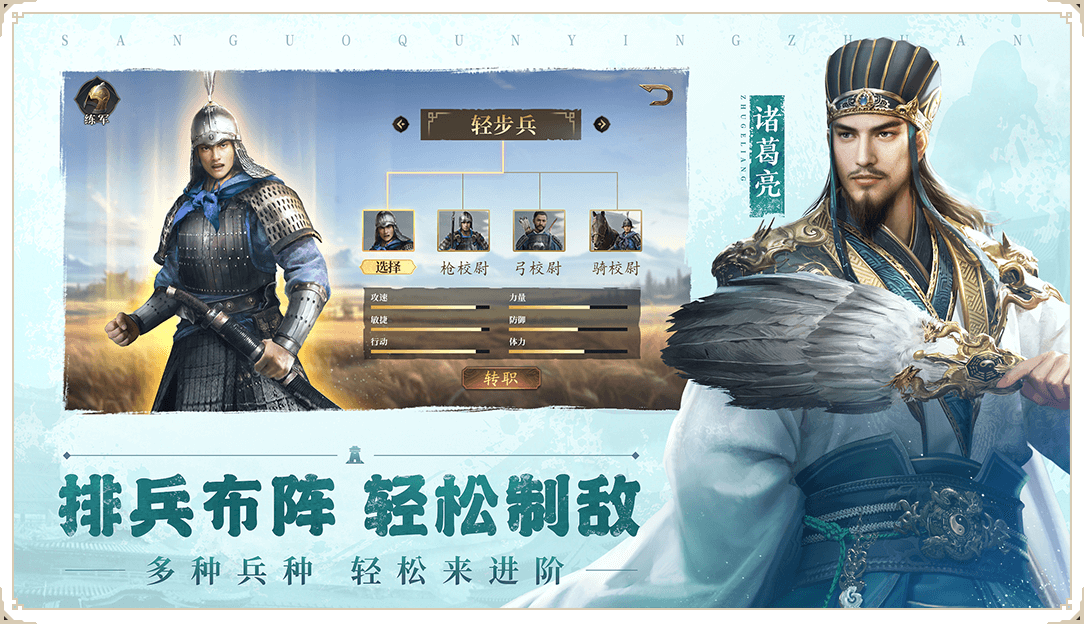 南蛮藤甲兵,幽州白马义从,陷阵营,虎豹骑;游戏里面玩家可以从普通士卒开始培养,最终打造出三国历史上赫赫有名的特殊兵种,逐鹿天下;