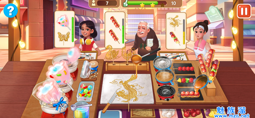 3.每个不同的游戏关卡都需要自己制作食物,使用不同的道具。