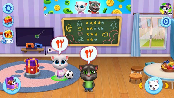 3.游戏玩起来一点也不无聊,这里有着6只不同的汤姆猫,你可以选择不同的汤姆猫进行养成。