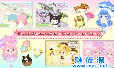 玩家可以在游戏中给自己的角色换衣服,衣服都是以三丽鸥角色为原型的!专门为三丽鸥粉丝设计。