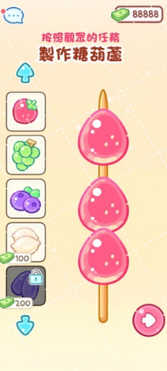 糖葫芦达人游戏便利店版本是一款非常有趣的模拟经营游戏,游戏画面温馨治愈,玩家可以扮演一名糖葫芦制作大师,使用各种各样的材料来制作自己喜欢的糖葫芦。游戏提供了数十种不同的材料,每一种材料都可以制作不同口味的糖葫芦。