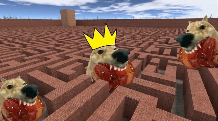 1、在迷宫当中与吃红烧肉的狗狗进行角逐,想办法生存下去。