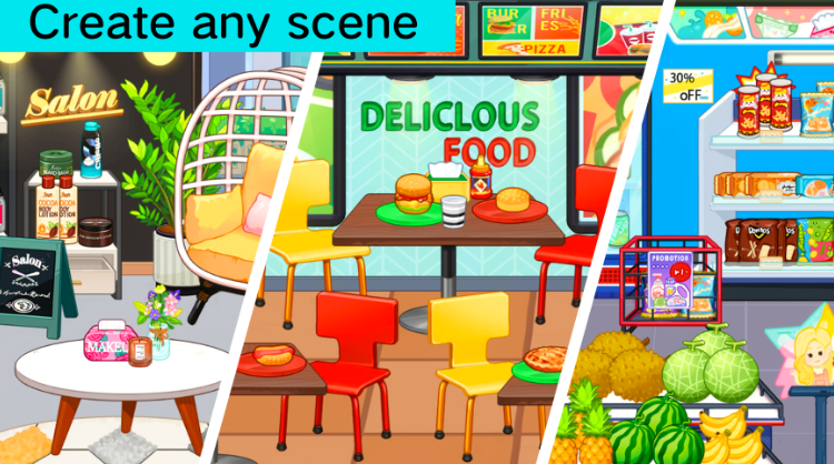 1、小镇中拥有非常丰富的场景,每个场景都设有与现实生活紧密相关的元素,让你感受沉浸式的互动体验。