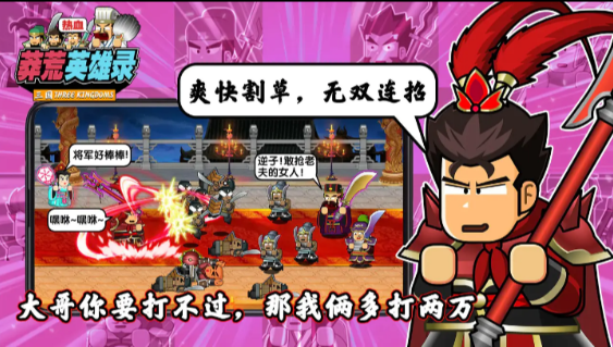2、经典三国英雄角色重现,玩家可以操作他们战斗,体验他们的招式和技能