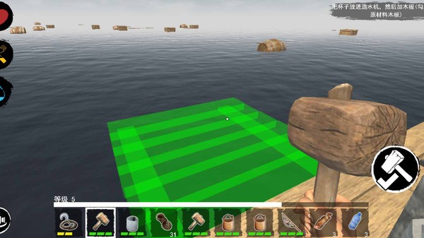 游戏的主要目标是尽可能长时间保持活力,为此,您需要进行制作和建设 - 收集资源,改进木筏并在木筏上建造一个庇护所。