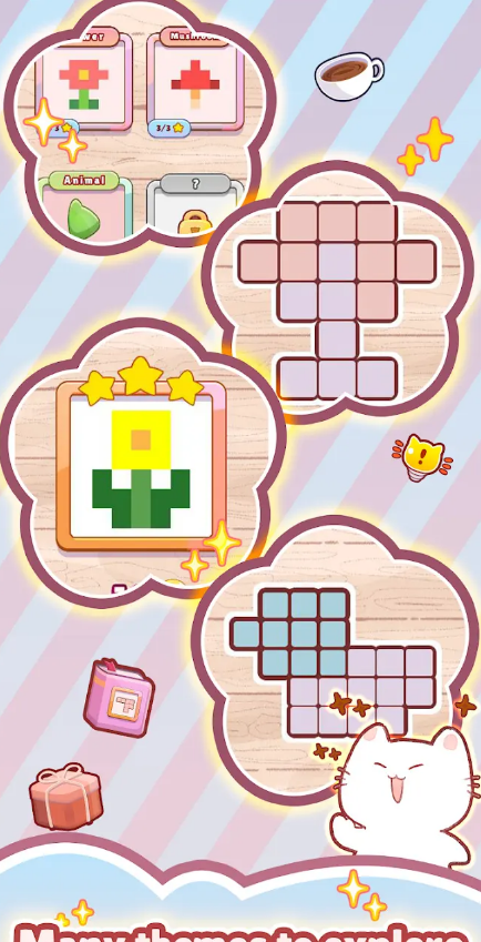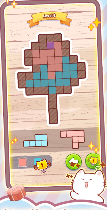 1、通过排列方块来完成拼图,每个谜题背后都藏着一个有趣的像素图像等你发现。