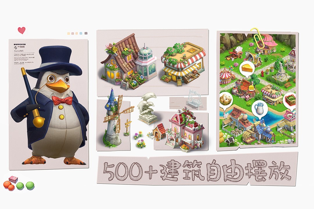 我们为各位新镇长准备了五百多份建筑图纸,镇长们收集了足够的材料之后,可以根据自己的心意打造你的专属五星小镇!听说隔壁有农业小镇日产鸡蛋五千颗,有工业小镇流水线从海岸排布到了山脚,还有旅游小镇被当地镇长装饰成主题公园让所有游客流连忘返呢!