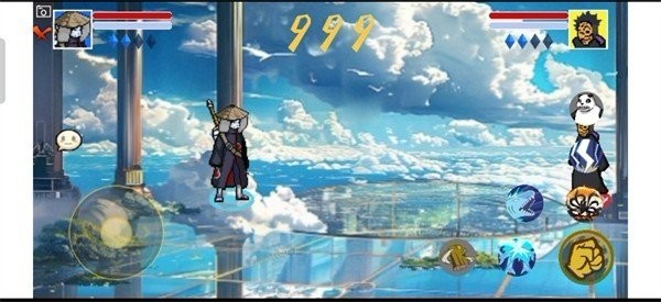 4、选择好后点击开始战斗玩家即可和人机进行对练,左边控制玩家移动,右边控制玩家攻击,或者是使用技能等等;