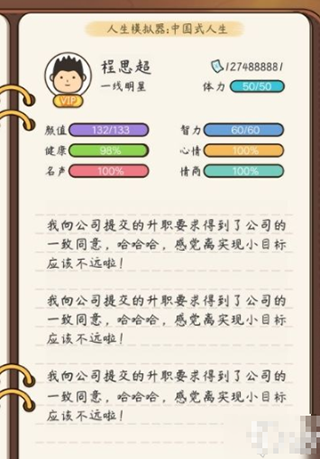 毕业后开始找工作,申请自己想要的职业,从最低的岗位做起(每年加班2次,3年后可以升职加薪)后续的升职与你的属性有关。关于成年后的名誉和情商,这里简单说一下,名利来得快,钱不多可以捐一万到一万一千。情商取决于概率、适应度、事件有机会增加情商。颜值、智商、健康、心情都可以在健身里刷(推荐普拉提和维密)。