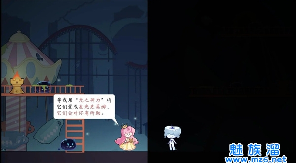 这是一款童话风治愈向的平台解谜游戏,拥有独特的双主角一侧明一侧暗的特性。