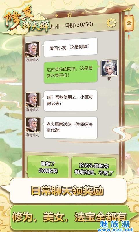 玩家因一次偶然的机会,被邀请加入了一个修真聊天群,从此踏入了修真界的门槛,开始了一段充满奇遇与挑战的修真之旅。