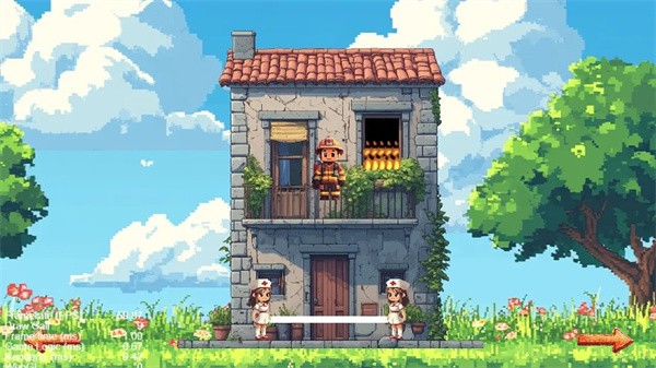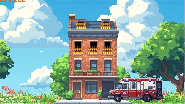 这款游戏运用了像素的画面风格来设计,模拟火灾现场去救援,让玩家去体验灭火闯关的过程;