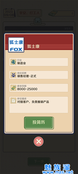 玩家可以按开始屏幕上提供的各种公司,点击选择自己喜欢的投递,然后就能够等待面试通知