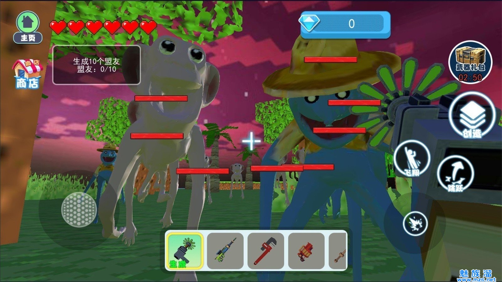 2. 在改造后的动物园里面对怪物和奇怪的生物并与之互动。