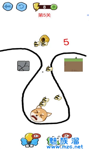 蜜蜂狗画线逃脱提供了提示和跳过功能,
