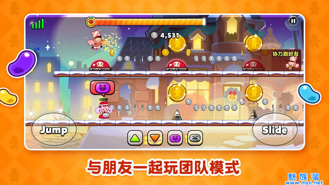 5、利用跳跃与滑行,获得果冻或闪避障碍物!