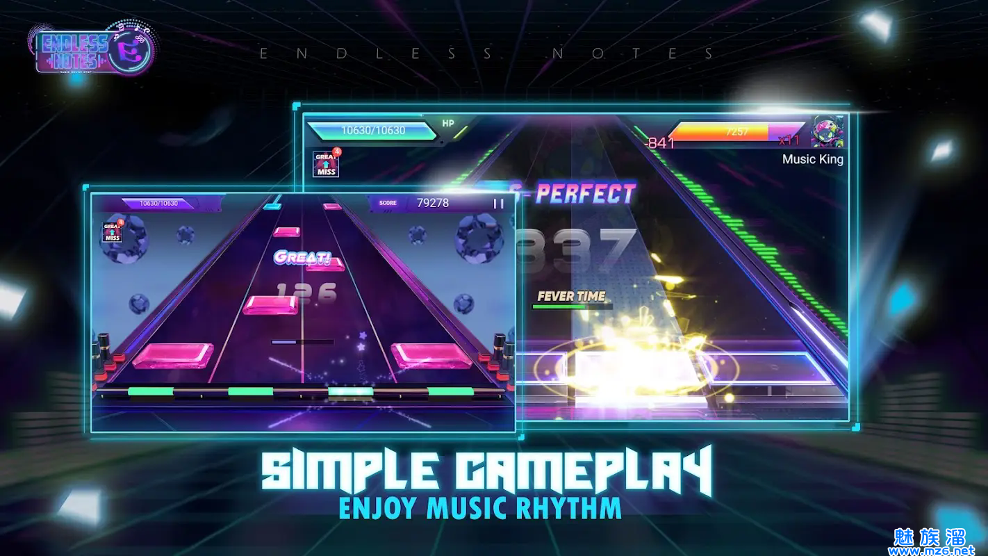 《不休的音符》是款老少皆宜的绿色音乐游戏,保持了经典下落式操作玩法,传统敲击音符加上滑动屏幕操作方式。让你在游戏过程中伴随节奏鼓点尽情演奏,体会到指尖随着旋律跳舞的感觉。游戏支持自由创造制作谱面,歌曲谱面由专业音乐团队打造,确保每个谱面的手感保质保量!