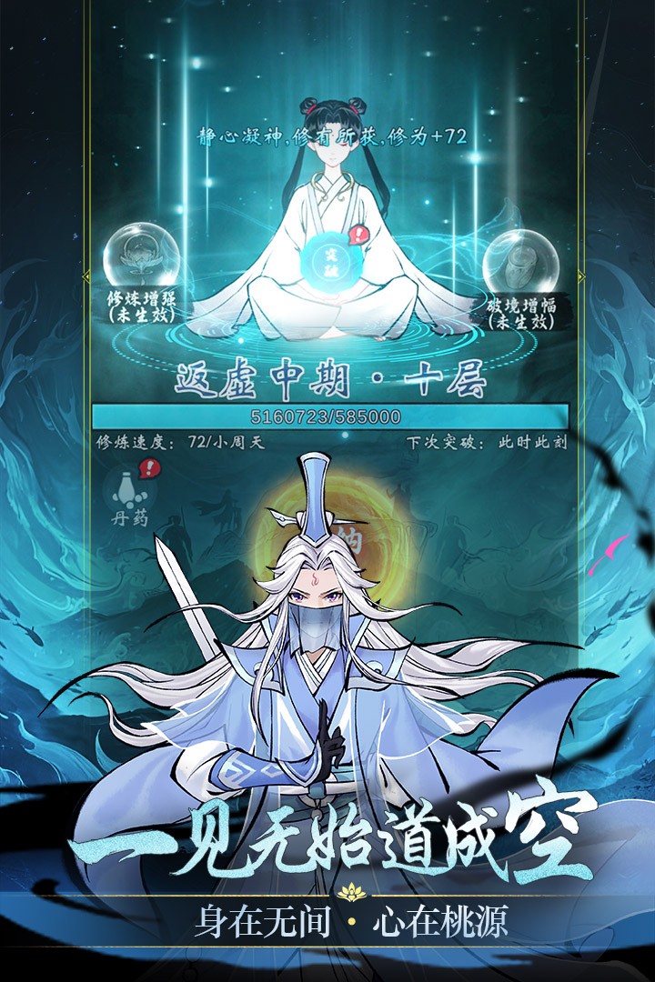玩家可以收集各种材料,精心炼制传说中的长生不老药,以此来提升自己的修为,即使在游戏之外,角色的成长也不会停止。