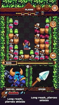 铲子骑士口袋地牢手机版是一款画风很复古的像素风角色扮演类动作冒险游戏,游戏融合了消除、地牢探索、战斗、解谜等元素,玩家将会扮演一名铲子骑士,在地牢中进入探索,解开谜题、与敌人进行战斗,通过不断的冒险、战斗来获取各种珍贵道具,提升自己的等级和能力。