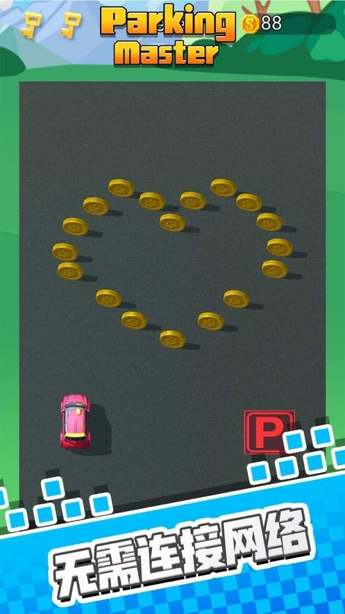 玩家的任务就是在场地中划出线路,让每辆车都停在对应的车位中,收集路途的金币