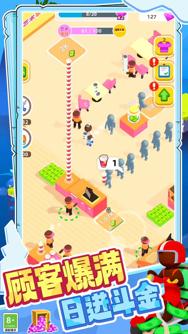 随着生意的发展,玩家需要不断提升服务质量,满足顾客的需求,从而获得更多的收入。
