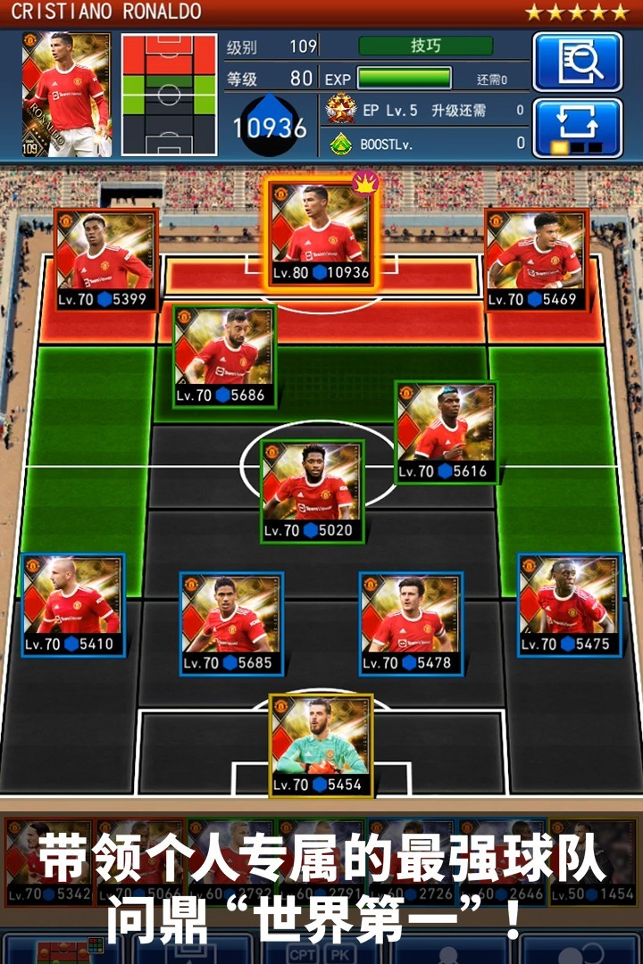 10.理论上14个五星满级球员可以达到60000战力,17个五星才能达到70000战力。