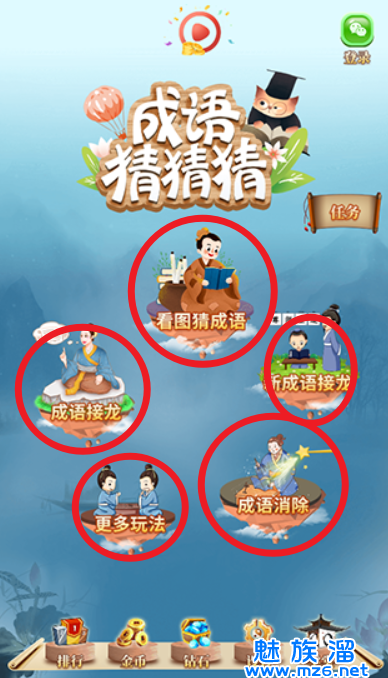 在这里还有成语消除的玩法,通过消除的方式来完成任务,非常有趣。