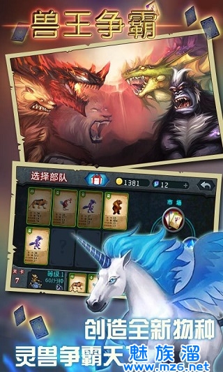 1、兽王进化,提高兽王的能力。注意:进化需要消耗三张卡牌,能力增长的性价比不高,不适合前期使用,绿色蓝色的卡牌不建议使用进化,到后期为紫色卡牌进化突破紫卡的能力上限。