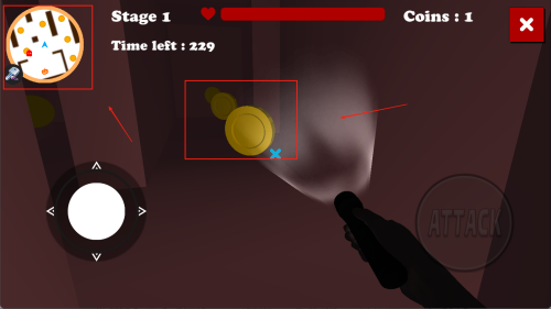 3、玩家需要将地图上的金币全部拾取,躲避怪物的追捕,找到出口逃离。