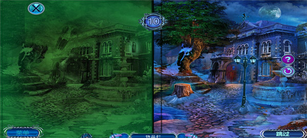11、拿走书柜上的开锁器和木板,拿走右边圆桌上的特殊眼镜,可以查看蓝色迷雾;