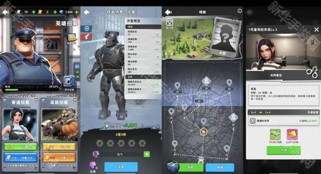 玩家需要抽取英雄组成队伍(左图 1/2),之后在地图上刷副本逮捕重刑犯,重刑犯被带回后可以大幅提升监狱生产效率游戏进行到第四章,玩家通过购买警车车库来正式开启卡牌战斗系统,首先解锁的是追捕重刑犯的“刷副本”战斗。玩家需要用游戏内购货币“钻石”(可以通过完成游戏内任务取得)来兑换抽卡券来抽取英雄,根据英雄属性建立自己的队伍,然后乘坐警车前往地图展开战斗。在指定关卡击败重刑犯之后就能将其带回关押在专属牢房,为监狱带来大幅度属性加成。战斗玩法和「Whiteout Survival」类似,都是放置玩法。内购钻石和抽卡券是游戏的主要变现节点。