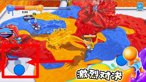 3.油漆潜行机制:角色可躲入己方颜色区域中进行加速与回血,利用这一设定可打出伏击或快速回防等战术操作。