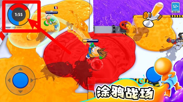 2.策略抢占地盘:进攻对方油漆桶并保护己方桶是胜利关键,需灵活调配攻击与防守资源,掌握战局节奏变化。