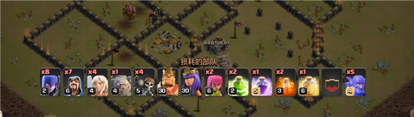 这是一套以野猪为主的流派,但是野猪要等到后期时机成熟才能放,前期主要是靠胖法或者天女进行清理大部分边路建筑,而且这个流派也比较靠援军的蓝胖,如果没有蓝胖,可能效果就没有这么强势了。